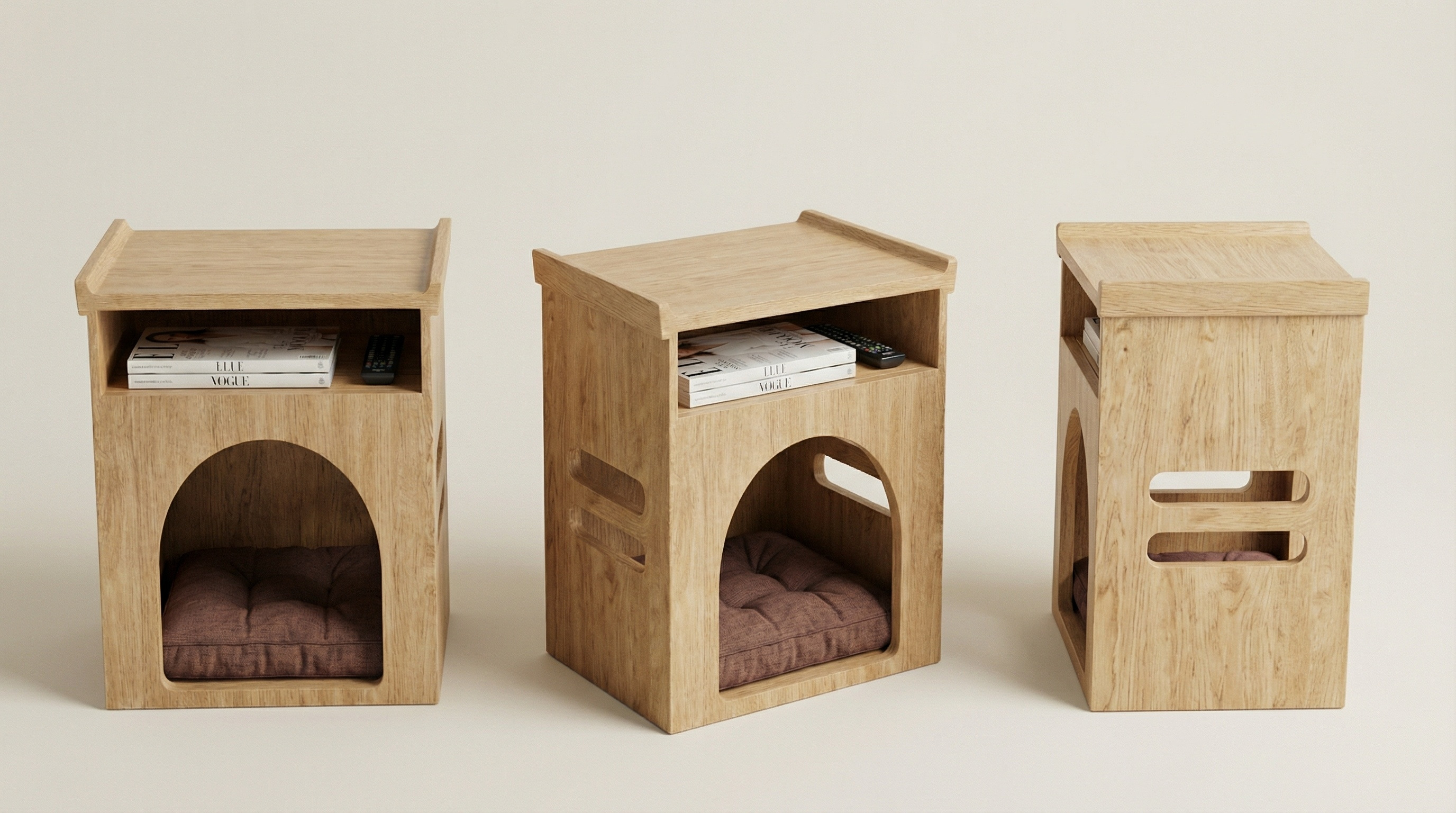 사랑하는 아이를 위해 비워 둔 작은 자리, 다시 만날 날을 기다리며 준비해 두는 보금자리. 반려와 나를 위한 원목 가구 Corner House Fit입니다.